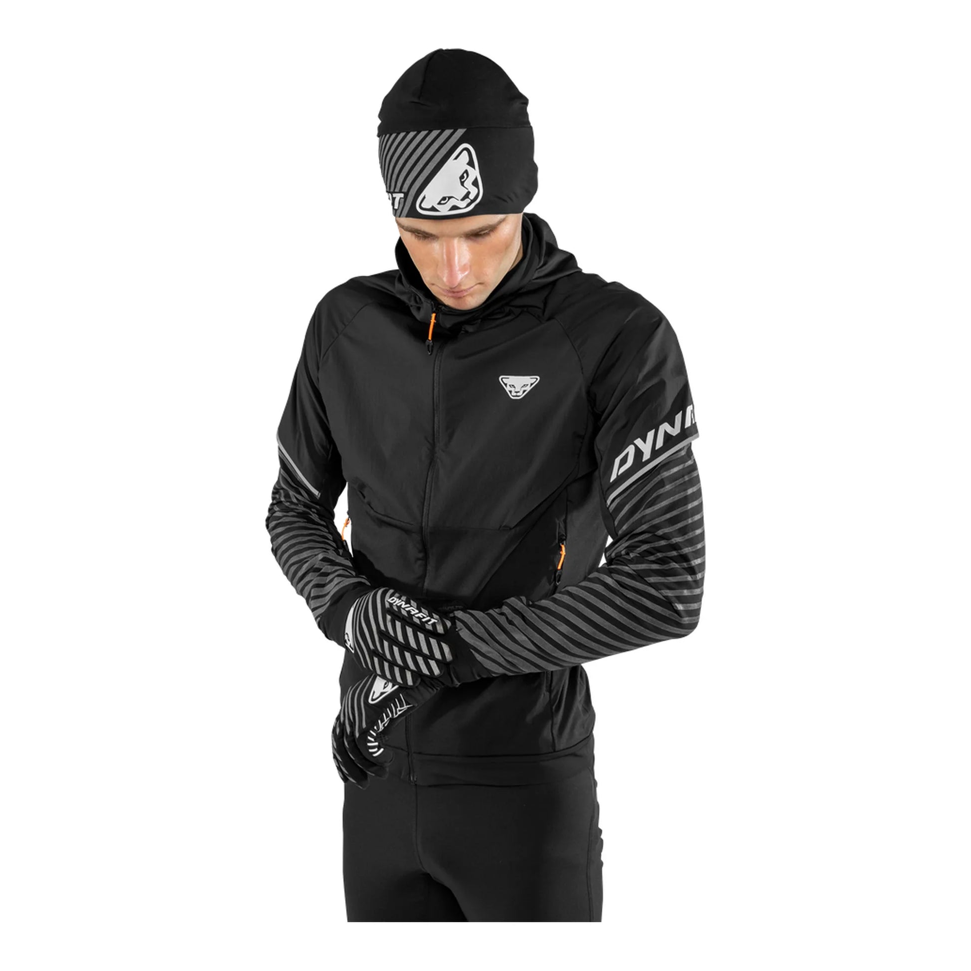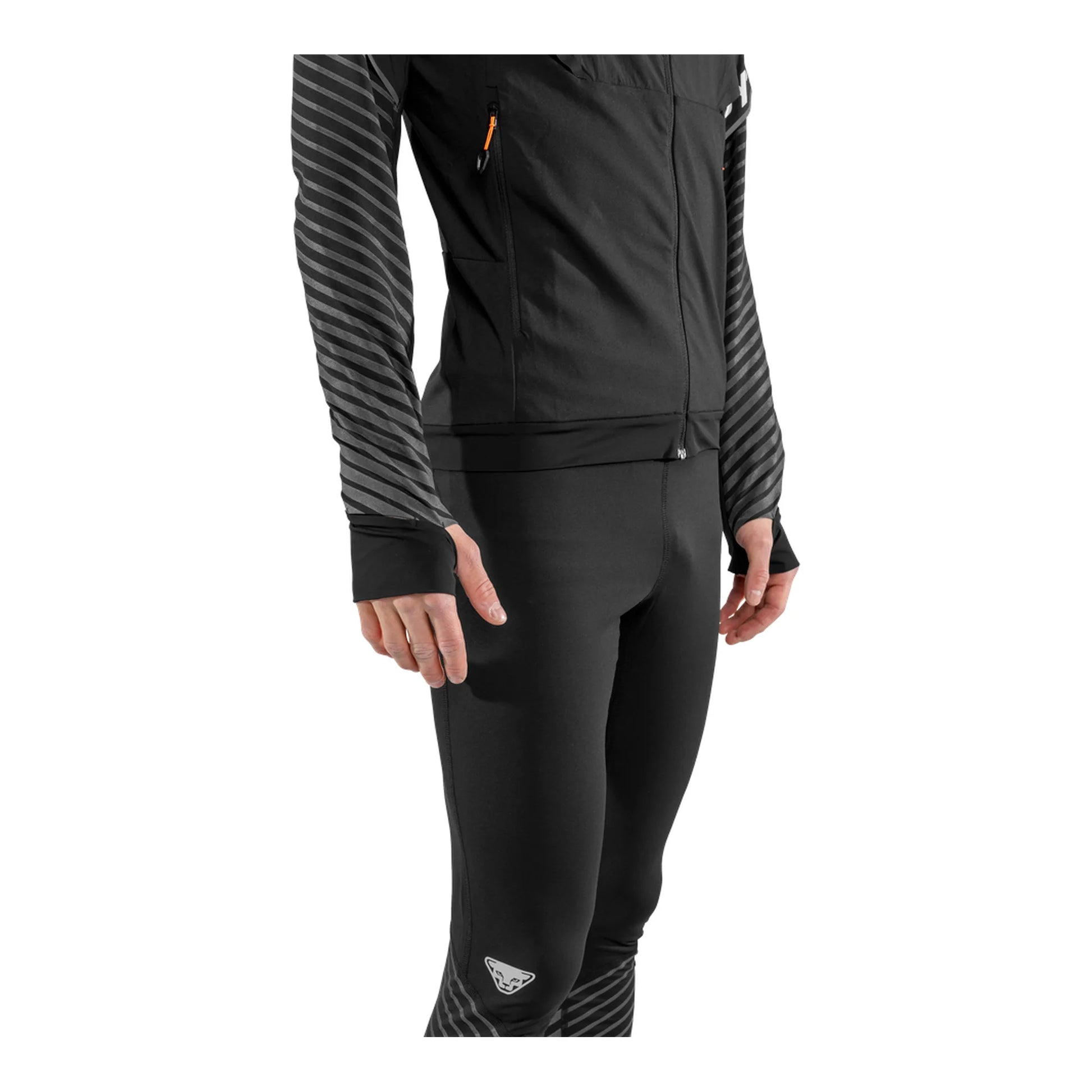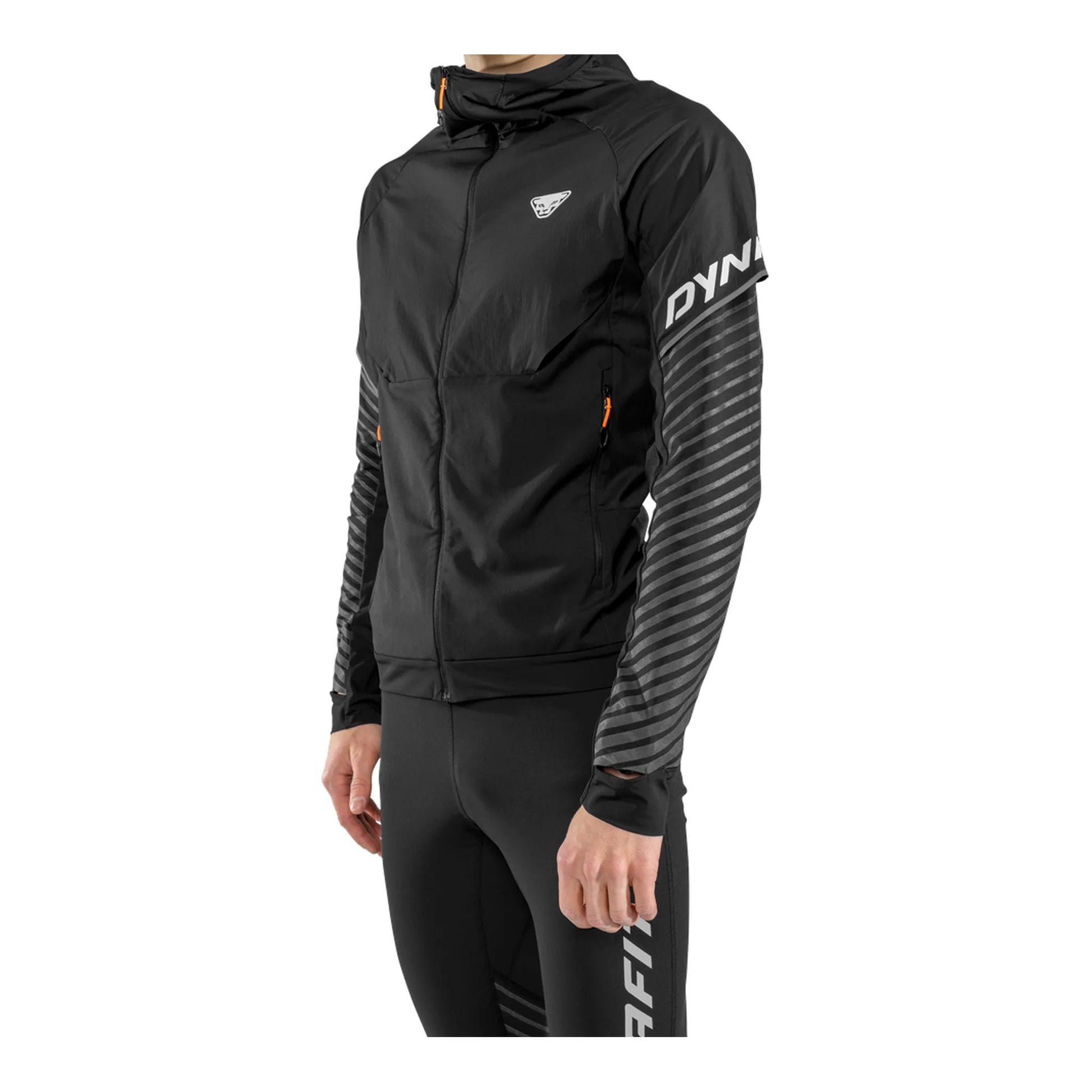Reflektierendes Design für mehr Sicherheit: Mit der Alpine Reflective Jacke für Herren bist Du beim Trail Running in der Dunkelheit besser sichtbar. Als Ganzjahresläufer kennst Du das Problem: In den Herbst- und Wintermonaten sind die Tage kurz und Du bist oft gezwungen, Deine Kilometer nach Einbruch der Dämmerung oder in den frühen Morgenstunden zu sammeln. Damit Du dabei von anderen nicht übersehen wirst, hat DYNAFIT die Alpine Reflective Jacke mit reflektierendem 360° Streifendesigns entwickelt. So kannst Du sorgenfrei Deine Runden drehen und bist rundum perfekt gerüstet. Allerdings ist der außergewöhnliche Look noch längst nicht alles, was die Laufjacke zu bieten hat: Die Alpine Reflective Jacke ist der perfekte Mix aus Bewegungsfreiheit, Atmungsaktivität und Windschutz. Der leichte, stretchige Thermostoff mit windabweisendem Nylon im Brust- und Schulterbereich verhindert, dass Du auskühlst. Gleichzeitig sorgen Perforationen im Rückenbereich dafür, dass Du auch bei schweißtreibenden Tempoläufen nicht überhitzt und überschüssige Wärme entweichen kann. Der athletische Schnitt mit elastischen Abschlüssen garantiert eine tolle Passform ohne Verrutschen. Abgerundet wird die Jacke durch eine wärmende Kapuze für besonders ungemütliche Lauftage und zwei Reißverschlusstaschen zum Verstauen von Kleinigkeiten. Alpine Reflective Jacke – Sichtbar und wohltemperiert durch die Übergangszeit.