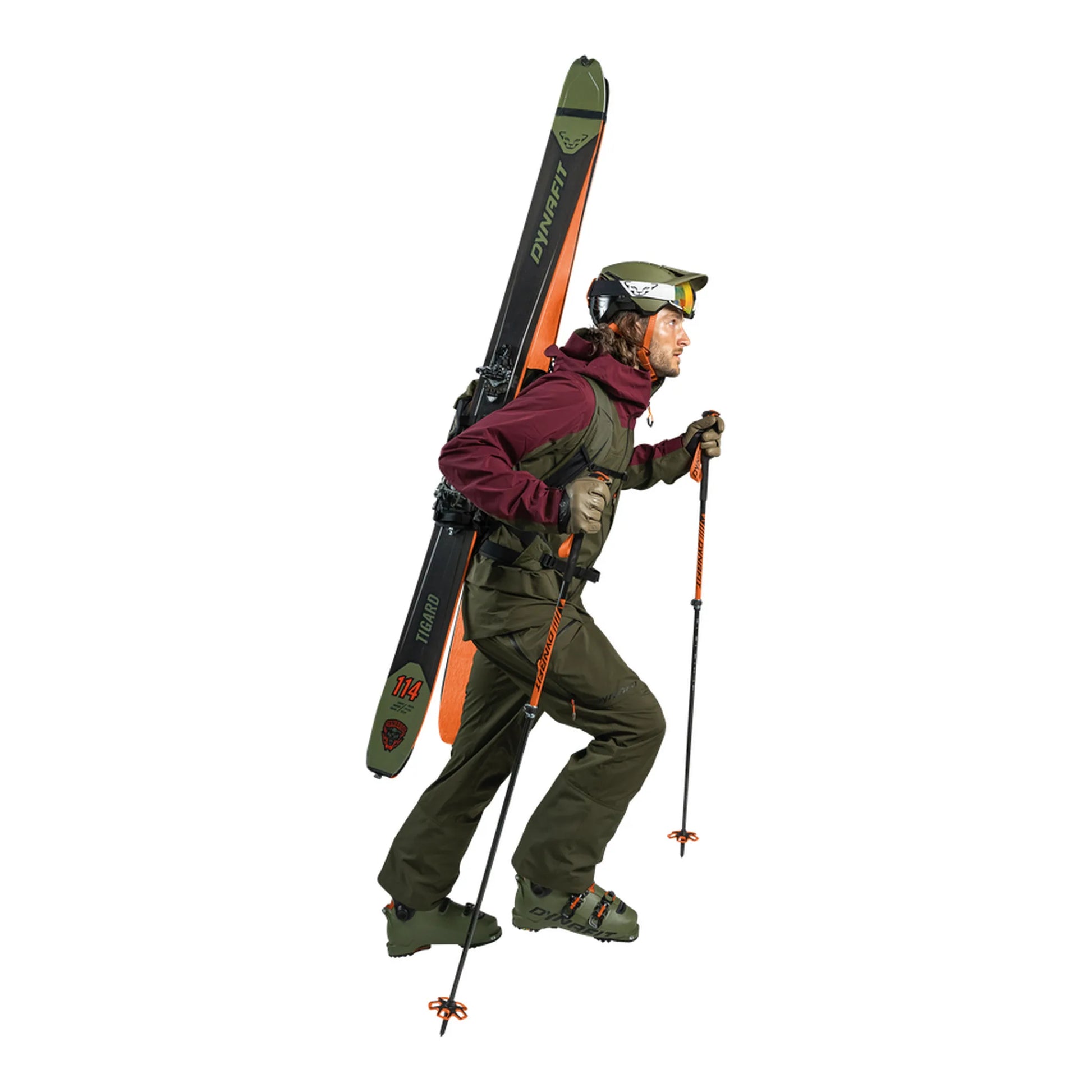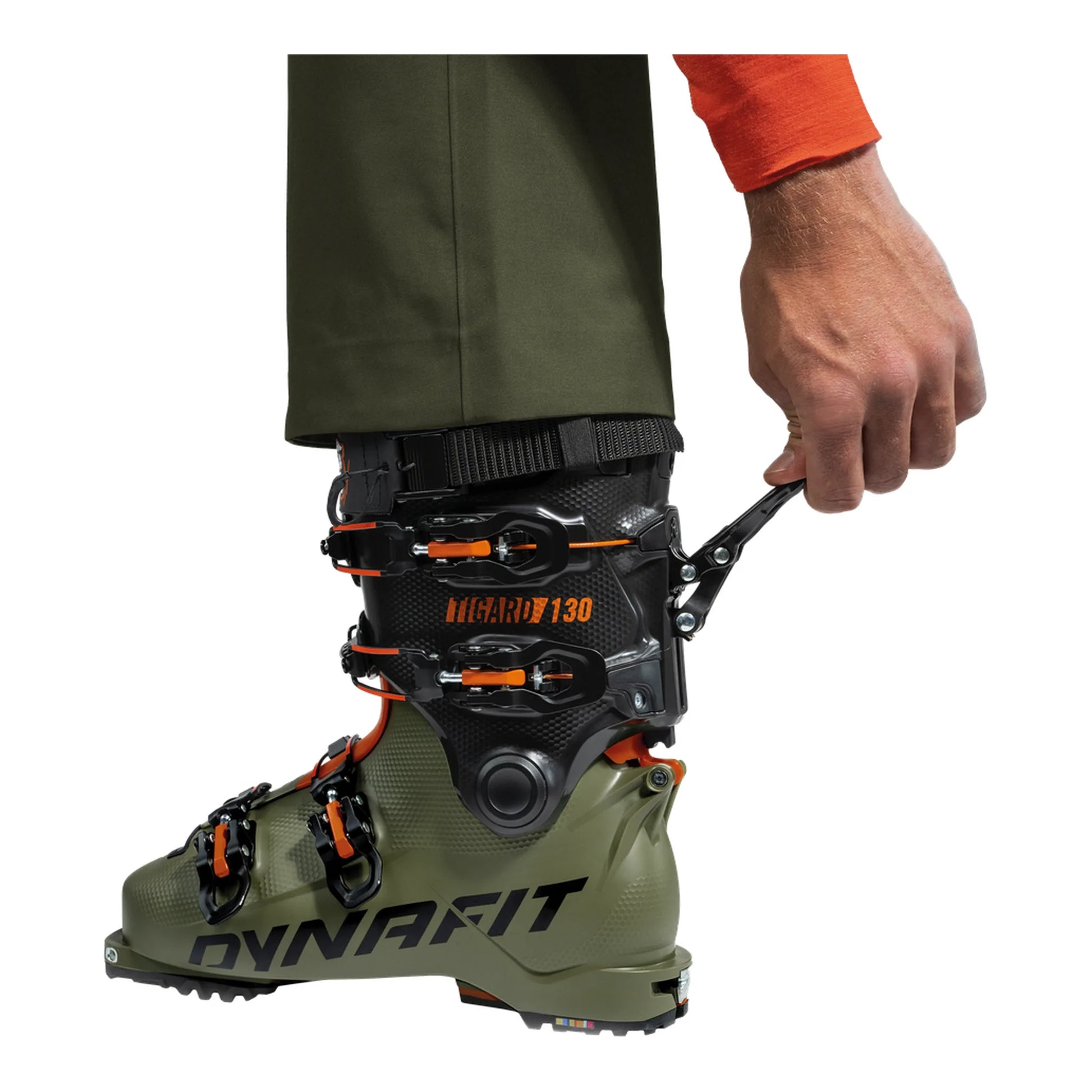 Die Powderjagd ist eröffnet: Der Tigard 130 Unisex Tourenskischuh ist ein aggressiver High-End Alpine-Tech-Boot für maximale Performance auf und abseits der Piste. Schnell wie ein Schneeleopard und stark wie ein Tiger vereint der Tigard 130 Boot Free Touring mit Ski Alpin. Der Boot ist der ultimative Begleiter für alle abfahrtsorientierten Athlet:innen und sowohl mit Rahmen- als auch mit Tech- und Alpin-Bindungen kompatibel. Dank seines geringen Gewichts von 1.550 g und der Schaftrotation von 70 Grad für außergewöhnlichen Bewegungsfreiheit meisterst Du auch mehrere hundert Höhenmeter spielend – und droppst garantiert als erstes in die perfekte Line! Der Boot setzt auf das patentierte Hoji Lock-System, das Schaft und Schale im Inneren des Schuhs zu einer untrennbaren und komplett verzahnten Einheit ohne Spiel verbindet. Das neuartige Grilamid-Material mit Carbonfaser bietet Dir sehr hohe Steifigkeit bei einem progressiven Flex von 130, damit Du Deine wohlverdiente Abfahrt in vollen Zügen genießen kannst! Dein Fuß ist mit einer Leistenbreite von 101 mm, den vier feinjustierbaren Schnallen und dem Power Strap perfekt eingefasst. Der Ski-Walk-Mechanismus ist über ein technisch ausgefeiltes Kabelsystem mit der oberen Schnalle und dem Power Strap verbunden. Mit nur einem Handgriff erfolgt der Wechsel zwischen Uphill und Downhill. Im Abfahrtsmodus ist der Tigard 130 mit einem Neigungswinkel von 13 Grad blockiert und bietet Dir eine angenehme, aber gleichzeitig sportliche und kontrollierte Position auf dem Ski – sei es beim Pressen, Carven oder Slashen. Als erster Schuh der DYNAFIT Kollektion setzt der Tigard auf eine Overlap Konstruktion. Diese garantiert ein perfektes Umschließen des Fußes für präzises Skifahren und direkte Kraftübertragung. Im Vergleich zu Alpinskischuhen ist der Einstieg dank der Easy Entry Features aber deutlich einfacher. Damit Du auch über Felsen und vereiste Flanken sicher zu Deiner Line gelangst, ist der Tigard 130 mit der neuen stabilen und langlebigen Gripwalk Sohle ausgestattet. Diese bietet Dir perfekten Grip und optimale Haftung beim Gehen außerhalb der Bindung. Für noch mehr Sicherheit auf Tour ist der Tigard zudem mit vollautomatischen Steigeisen kompatibel. Eine weitere Besonderheit des Tigard 130 ist der optional thermoformbare Innenschuh Dynafitter 15. Dank Primaloft bleiben Deine Füße auch bei eisigen Temperaturen angenehm warm. Gleichzeitig bietet Dir der Liner höchsten Komfort und Steifigkeit bei geringem Gewicht. Wie alle DYNAFIT Tourenskischuhe wird der Tigard im italienischen Montebelluna gefertigt und besitzt eine lebenslange Produktgarantie. Tigard 130 – First up. First down.